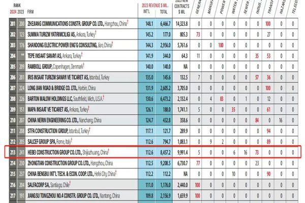 喜讯!河北建工集团连续五年入选ENR全球最大250家国际承包商榜单 9月12日,2024年度美国《工程新闻纪录(ENR)》“全球最大250家国际承包商”榜单发布。中国企业共有81家企业入围,上榜数量与2023年持平,继续蝉联各国榜首。河...