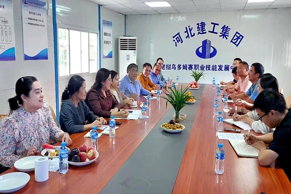 2024年8月18日上午,老挝计划投资部副部长/老中合作委员会副主席赛萨纳·西提蓬率代表团一行,到河北建工集团援老挝乌多姆赛职业技能发展中心项目考察。河北建工集团国际部总工程师王建伟、河北建工集团援老挝乌多姆赛职业技能发展中心项目施工技...